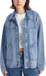 - Classic design: Casual jean coat with buttons has a collared neckline with shirred collar and cuffs for a loose and stylish fit, and two pockets at the waist for added layering and classic versatility