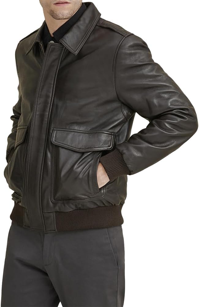 - A-2 MILITARY-INSPIRED PILOT STYLE: Emulating the bold and cozy military pilot bomber jackets, this army bomber style jacket is made to the same high standards perfect for various occasions, including casual gatherings, halloween parties, birthdays, work, celebrations, holidays, and Christmas. Elevate your style with this men’s brown leather jacket that channels your inner rider.