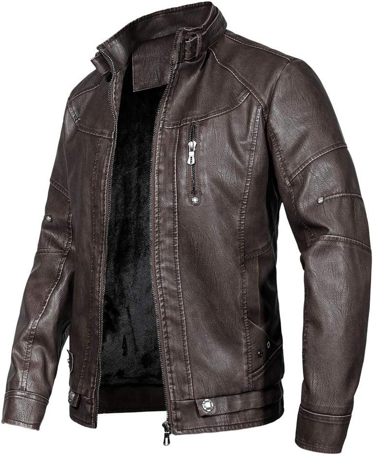 Men’s Vintage Stand Collar Leather Jacket Motorcycle PU Jacket and Coat