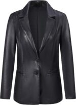 Women Faux Leather Blazer Jackets/ for Spring and Fall Fashion, Vegan Leather Button Down Coats