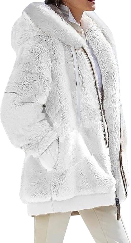 Women’s Coat Casual Lapel Fleece Fuzzy Faux Shearling Zipper Coats Warm Winter Oversized Outwear Jackets
