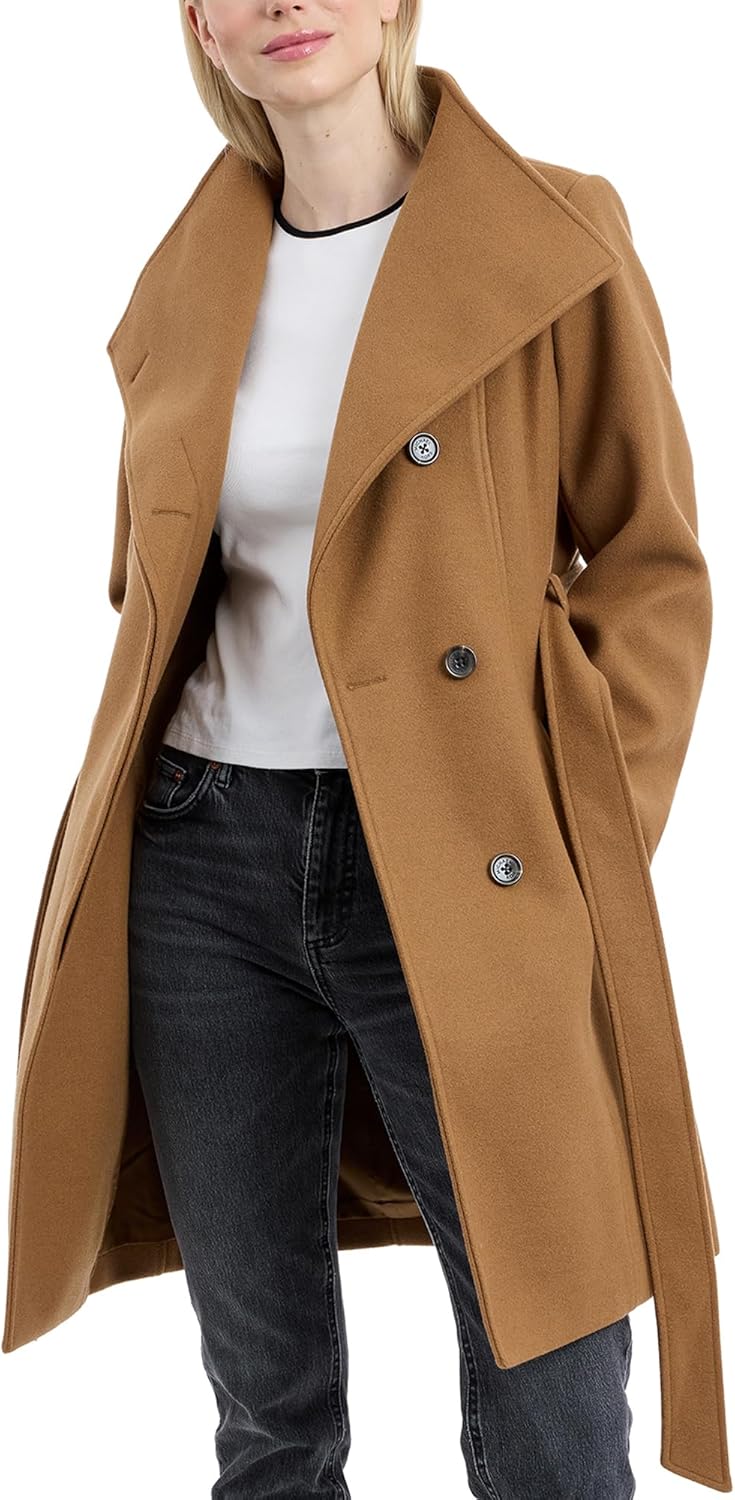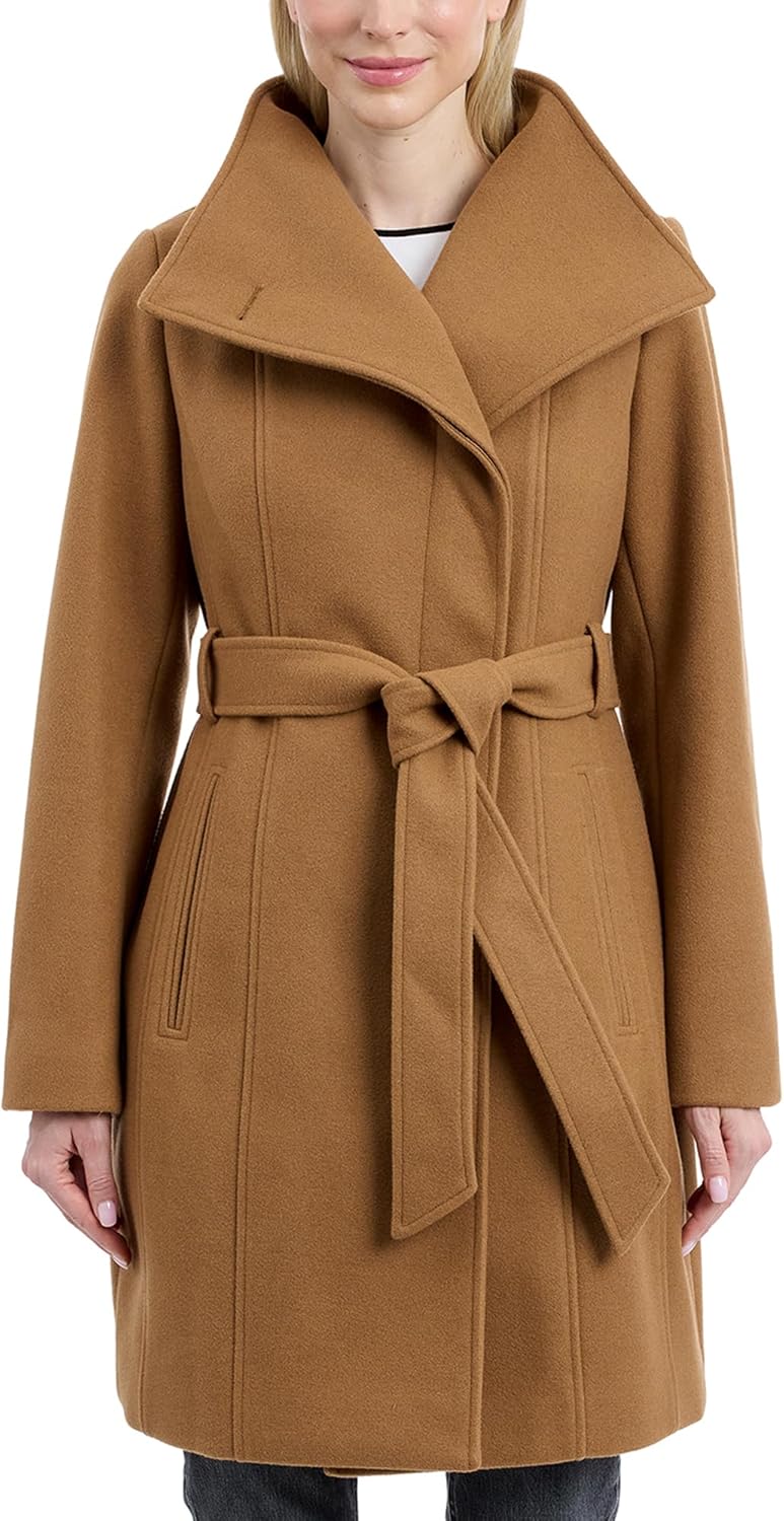 womens Faux Wool Wrap Coat With Belt, Long Winter Coats for Women