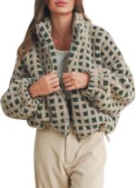- Cute sherpa fleece jacket for women, high-quality faux fur fabric, super soft, skin-friendly and comfortable to wear, warm-keeping in fall and winter, plaid zip up fleece jacket